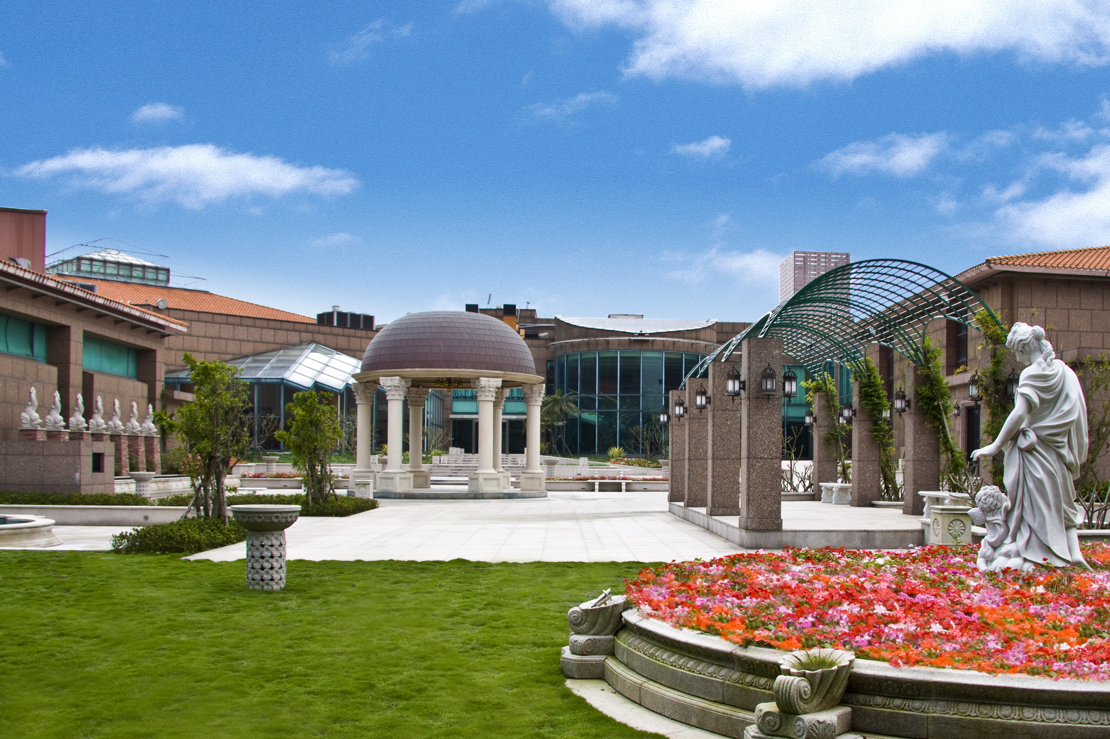 리젠트 타이베이 Regent Taipei타이베이 중산구 중심에 위치한 5성급 럭셔리 호텔로, 총 538개의 객실을 갖춘 대형 프리미엄 호텔이다. MRT 중산역에서 도보 5~8분으로 교통 접근성이 뛰어나 비즈니스·관광 모두에 적합하다. 객실은 대리석 욕실, 욕조·샤워부스 분리, 방음, 고급 침구, 넓은 작업공간, 미니바, 대형 TV, 무료 Wi-Fi 등 최고급 시설을 갖추고 있으며, 상위 등급 객실은 라운지 이용·프라이빗 체크인·애프터눈 티·칵테일 제공 등의 혜택이 포함된다. 호텔 내부에는 광동요리 레스토랑 Silks House, 스테이크하우스 Robin’s Grill, 일식당 등 다양한 다이닝 옵션이 있어 미식 경험 또한 수준 높다. 20층에는 Wellspring Spa와 루프탑 온수 풀·피트니스 센터가 마련되어 휴식과 웰니스 기능이 우수하며, 지하의 Regent Galleria는 고급 브랜드가 입점한 럭셔리 쇼핑 공간으로 유명하다. 비즈니스센터·대형 연회장·회의실도 완비되어 있으며, 공항·도심 이동 서비스도 제공되어 전반적으로 ‘숙박·휴식·쇼핑’을 모두 한 호텔에서 누릴 수 있는 타이베이 대표 호텔로 평가받는다. |