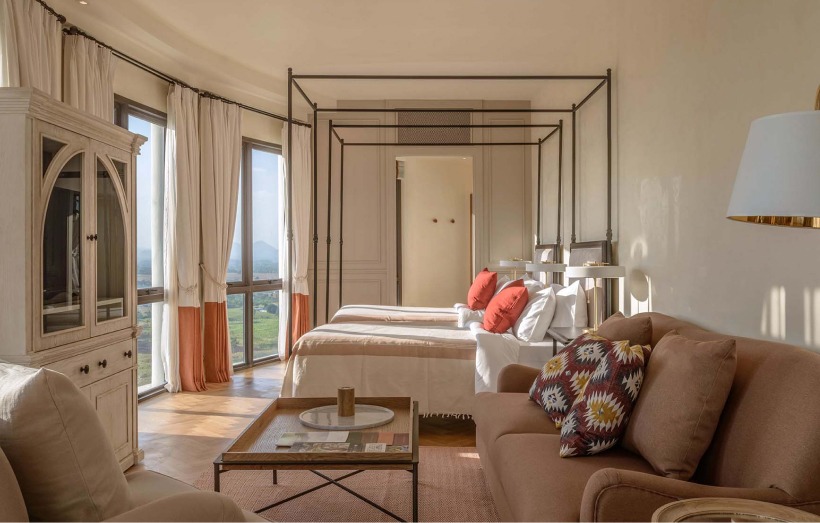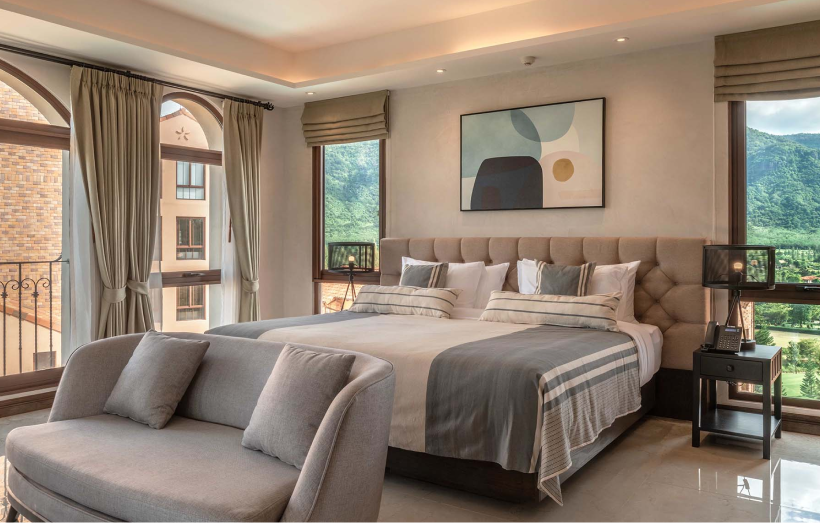 태국 카오야이 토스카나밸리 리조트 단지 내에 위치한 프리미엄 숙소로, 남유럽 **중세 성(城)**을 모티브로 한 외관과 클래식한 인테리어가 특징입니다. 객실은 스탠다드부터 디럭스, 스위트까지 다양하게 구성되어 있으며, 일부 객실은 발코니·테라스를 갖춰 골프장, 산악, 정원 등 탁 트인 자연 경관을 감상할 수 있습니다. 고급 가구와 넉넉한 공간의 모던 클래식 스타일로 꾸며져 쾌적한 휴식을 제공하며, 에어컨·무료 Wi-Fi·TV·미니바·전용 욕실 등 기본 편의시설을 완비했습니다. 리조트 내 레스토랑과 라운지, 수영장·스파 등 공용 시설 이용이 편리하고, Toscana Valley Country Club과 인접해 라운딩 동선이 짧아 골프+휴양 체류형 여행에 적합합니다. 전반적으로 감성적인 유럽풍 분위기와 자연 속 여유를 동시에 누릴 수 있어 커플·부부·가족은 물론 소규모 VIP 골프 여행객에게 특히 선호되는 숙소입니다.