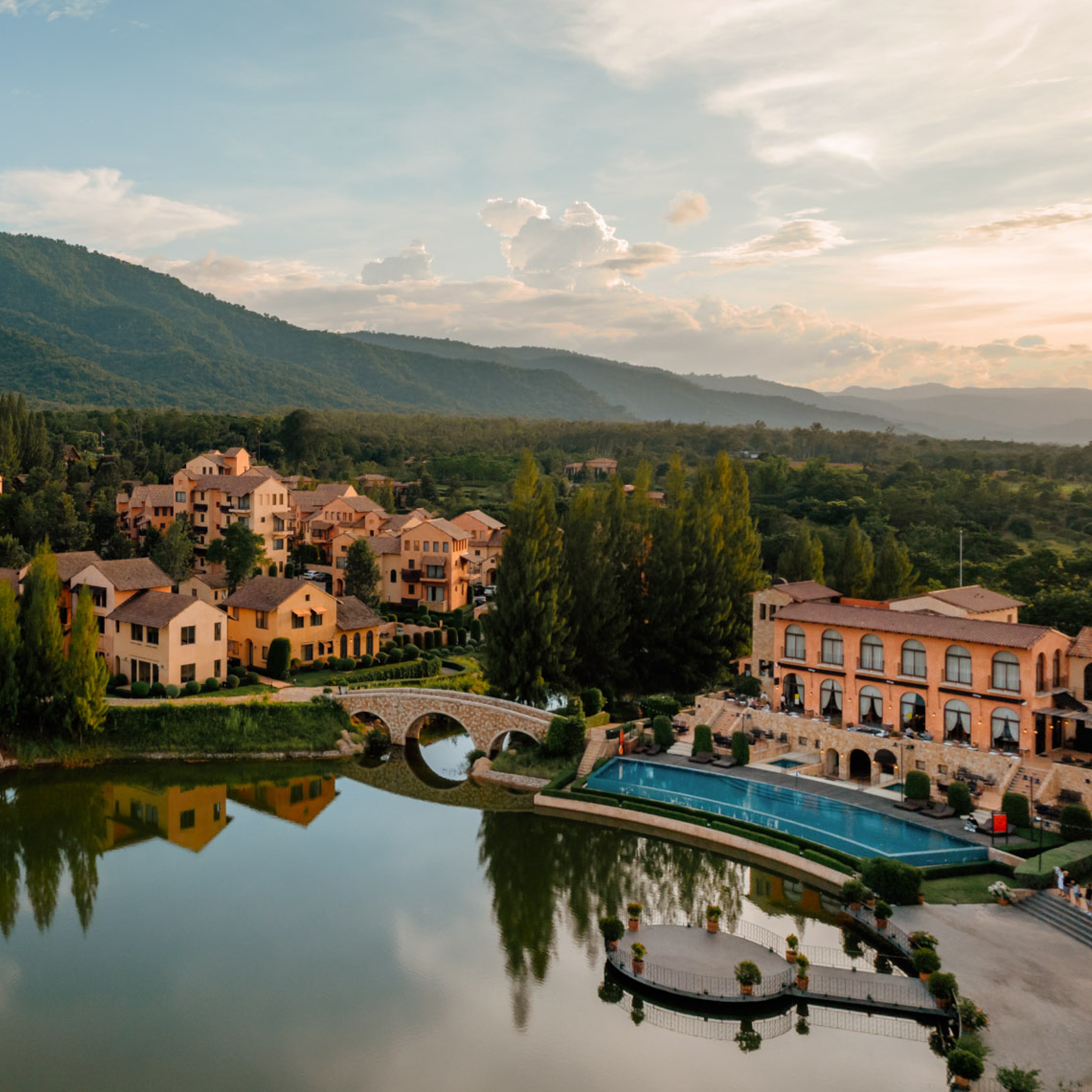 태국 카오야이 토스카나밸리 리조트 단지 내에 위치한 대표적인 이탈리안 감성 테마 호텔입니다. 피사의 사탑을 모티브로 한 랜드마크 건물로 설계되어 리조트 전체 분위기를 상징하는 숙소이며, 총 약 26개의 객실로 구성돼 있습니다. 객실은 Bassa Vista, Alta Vista, Attico Vista 등 다채로운 뷰 옵션이 있어 카오야이 산악 지형과 토스카나밸리 전경을 파노라마처럼 감상할 수 있는 것이 큰 특징입니다. 객실 내부는 모던 클래식 스타일로 꾸며져 넉넉한 공간과 세련된 감각을 제공하며, 에어컨·무료 Wi-Fi·TV·전용 욕실 등 기본 편의시설이 잘 갖춰져 있어 편안한 휴식이 가능합니다. 또한 호텔 내 레스토랑과 Caffè al Secondo 카페에서 조식과 다양한 식사 옵션을 즐길 수 있으며, 스파·마사지·사우나·피트니스 등 휴양형 부대시설도 마련돼 있어 체류 만족도가 높습니다. 24시간 운영되는 프런트데스크와 무료 주차장, 유료 공항 셔틀 서비스가 제공돼 이동 편의도 좋습니다. Toscana Piazza는 토스카나밸리 내 골프장, 카페거리, 산책 코스 등과 근접해 있어 골프 여행, 감성 휴양, 가족·커플 여행 모두에 적합한 숙소입니다.