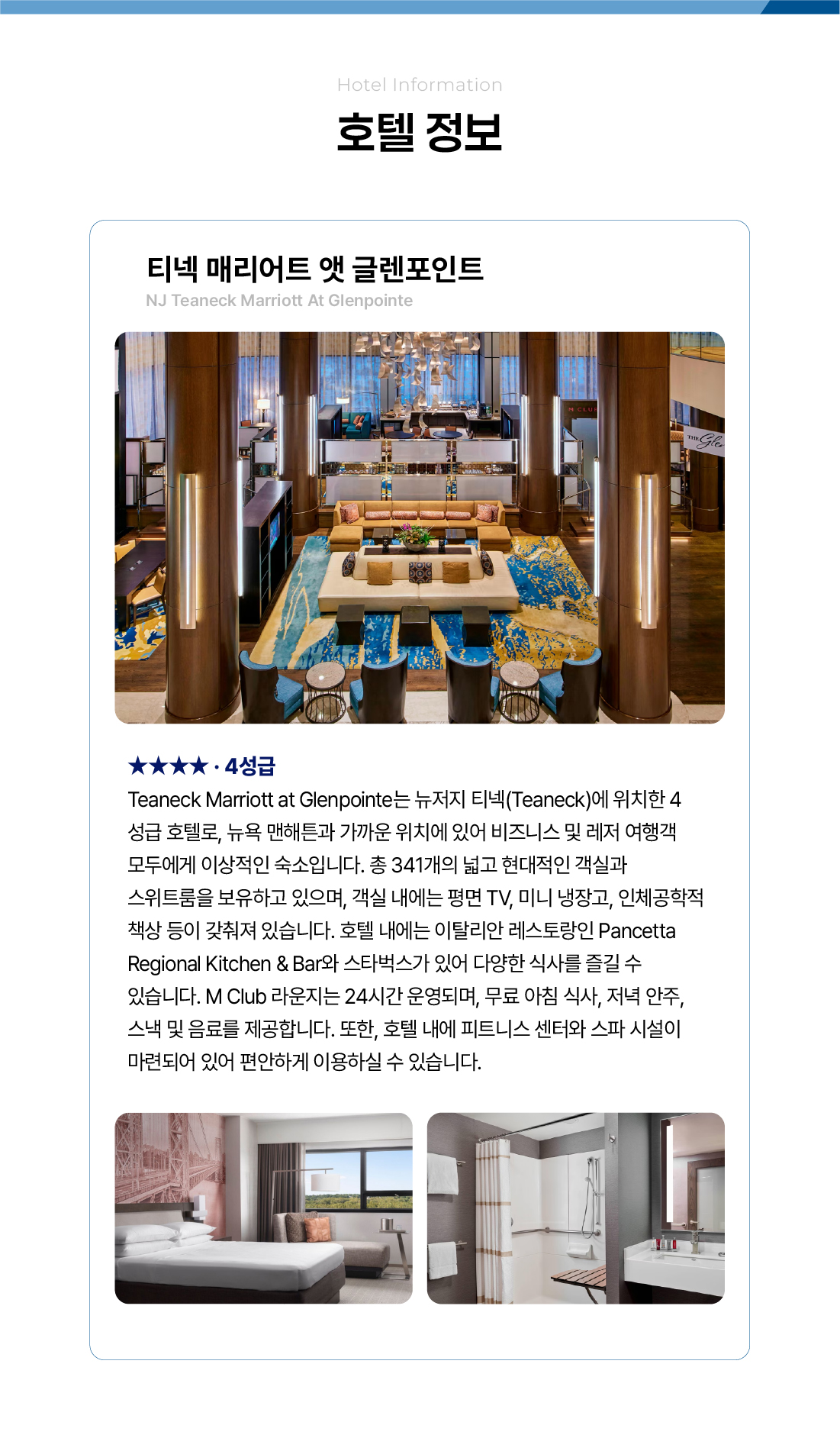 | NJ Teaneck Marriott At Glenpointe또는 동급(4성급) | |||